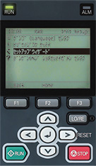 必要なときに接続して、パラメータの設定や運転状態の確認などができる、テキスト表示のキーパッドです。初期設定に必要です。
