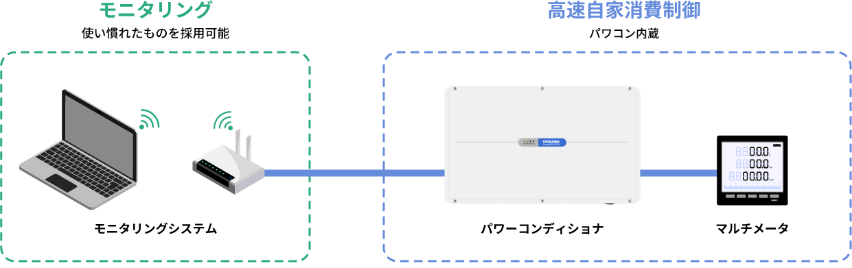 使い慣れたモニタリング装置を使用しつつ、パワコン内蔵の高速自家消費制御を使えます。